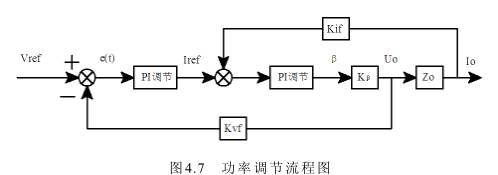 操作人員通過(guò)上位機或功率調節旋鈕將功率設定值傳送給DSP,DSP通過(guò)將功率設定值與實(shí)際值進(jìn)行比較并進(jìn)行PI調節算法,功率調節的流程框圖如圖4.7所示