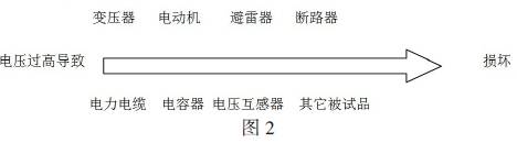 直流高壓發(fā)生器具有體積小、電壓高、使用方便等優(yōu)點(diǎn),特別適用于現場(chǎng)預防試驗和交接試驗,因此在各類(lèi)試驗中廣泛采用,而我們現在使用的直流高壓發(fā)生器,只有在被試品發(fā)生閃絡(luò )擊穿時(shí)通過(guò)大電流保護用電流繼電器才能跳開(kāi)控制回路電源從而斷開(kāi)主回路電源,而對其它意外原因造成的輸出電壓失控沒(méi)有什么保護措施,這種失控電壓一旦加到被試品上后可形成如圖2 所示的一系列對電力系統的損壞,甚至造成部分設備停電事故。