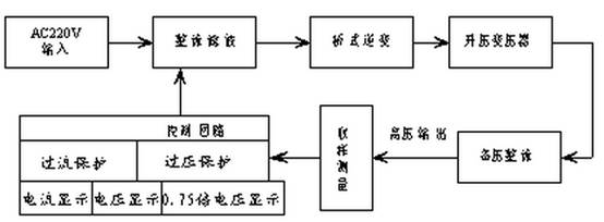 工作原理簡(jiǎn)述如下:在高壓曝光之前,CT主控計算機發(fā)出指令并提供要求曝光的參數條件(KV、MA、KW),本高壓發(fā)生器(簡(jiǎn)稱(chēng)本機)接到指令后對本機狀態(tài)進(jìn)行檢測,確認一切正常后發(fā)出高壓準備好的信息給CT主機,隨后CT主機下達曝光命令并傳送曝光控制脈沖到本機,本機啟動(dòng)旋轉陽(yáng)極,激勵燈絲電流,調整高壓變壓器初級電壓達到CT要求參數值后,送出高壓發(fā)生器OK信息并開(kāi)始產(chǎn)生高壓供給球管曝光,在整個(gè)曝光期間,不斷根據管電流的變化,及時(shí)調整高壓初級電壓以保證整個(gè)曝光過(guò)程產(chǎn)生平穩的脈沖高壓和較為恒定的管電流,一旦檢測到高壓參數異常,立即切斷并報出錯誤代碼。