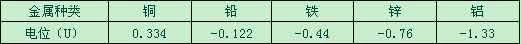 表2不同金屬在電解質(zhì)中形成原電池的電極電位