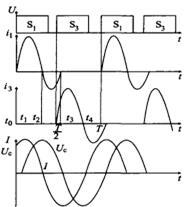 (1)t0 ~t1 : i1>0 , i3 <0 , i1 通過(guò) S1 , i3 通過(guò) D3。t1時(shí)刻 ,流過(guò)D3的電流為零 , D3關(guān)斷 。