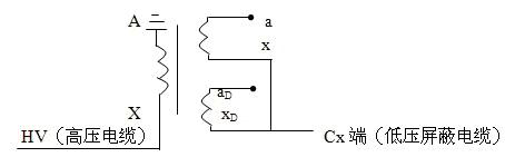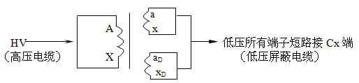 X接地點(diǎn)打開(kāi),使A,X相連后接儀器HV端,低壓端所有繞組短接后接Cx端。