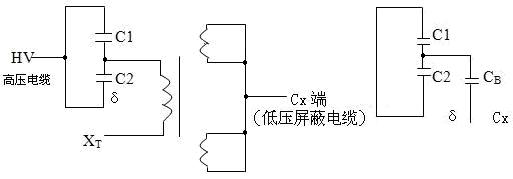 如圖11所示,用反接線(xiàn)方式測量,將C2末端δ與C1首端相連,接儀器HV口(用高壓電纜)XT懸空,中壓互感器二次線(xiàn)圈短路接地。