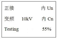 4、測試:打開(kāi)開(kāi)關(guān),當光標在測試項目上時(shí),按確認鍵大約5秒鐘開(kāi)始測試。測試過(guò)程中顯示的畫(huà)面如圖18(正接線(xiàn),變頻)所示,當下面的進(jìn)程到100%時(shí)候測試完畢,然后顯示測量結果見(jiàn)圖19所示,此時(shí)光標指示打印機圖標,按確認鍵打印報告。