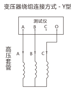 3. 對于中間調壓的有載開(kāi)關(guān)U、V、W 三相的1、2、3、4。分別連接在一起。U、V、W 三相的另外一端都連接在一起作中性點(diǎn)。儀器的 A、B、C、O分別對應的接在U、V、W上和作的中性點(diǎn)上。接線(xiàn)方式YO測試方法和帶繞組測試一樣。