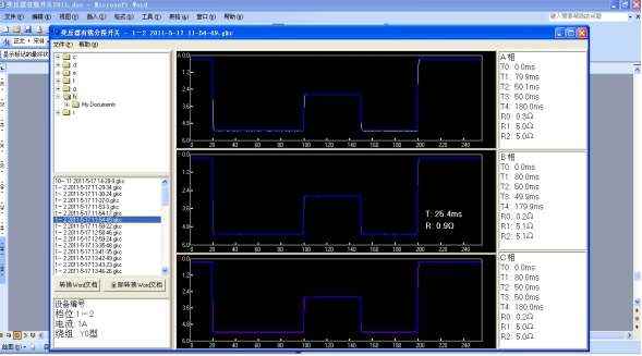 光標移到波形中間,顯示的是哪個(gè)點(diǎn)的時(shí)間和阻值哪里點(diǎn)擊轉換WORD文檔顯示:文件在U盤(pán)內面,要打開(kāi)WORD文檔顯示測試的報告。