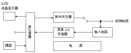 根據故障的探測原理,當儀器處于閃絡(luò )觸發(fā)方式時(shí),故障點(diǎn)瞬時(shí)擊穿放電所形成的閃絡(luò )回波是隨機的單次瞬態(tài)波形,因此測試儀器應具備存儲示波器的功能,可捕獲和顯示單次瞬態(tài)波形。DGC-H 電纜故障測試儀采用數字存儲技術(shù),利用高速A/D轉換器采樣,將輸入的瞬態(tài)模擬信號實(shí)時(shí)地轉換成數字信號,存儲在高速存儲器中,經(jīng)CPU微處理器處理后,送至LCD顯示控制電路,變?yōu)闀r(shí)序點(diǎn)陣信息,于是在LCD屏幕上顯示當前采樣的波形參數。