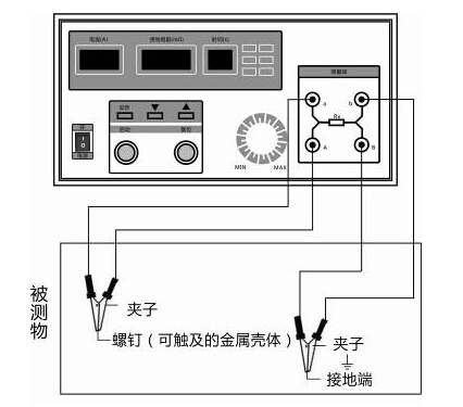 1、接線(xiàn)。將一副(二組)測試線(xiàn),紅線(xiàn)組中粗、細測量棒一端分別插入測試儀“A”、“a”測量端上(粗線(xiàn)對“A” ,細線(xiàn)對“a”) ;黑線(xiàn)組中粗、細測量棒一端分別插入測量?jì)x“B”、“b”測量端上(粗線(xiàn)對“B”,細線(xiàn)對“b”),測量線(xiàn)另一端的夾子分別接被測設備保護可觸及的金屬殼體和接地端。 注:有的用戶(hù)將電源線(xiàn)插頭上接地端代替被測物接地端,這樣給測量帶來(lái)誤差,會(huì )增加引線(xiàn)電阻引起的測量值。當大電流流過(guò)接地線(xiàn),接地線(xiàn)會(huì )發(fā)熱,所以所測量時(shí)間不宜過(guò)長(cháng)。