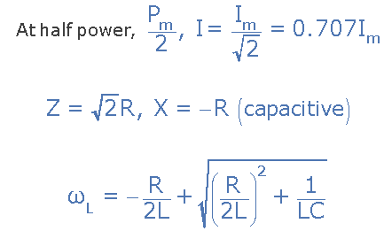 如果現在降低或增加頻率,直到串聯(lián)諧振電路中吸收的平均功率達到諧振時(shí)最大值的一半,我們將產(chǎn)生兩個(gè)稱(chēng)為半功率點(diǎn)的頻率點(diǎn),它們比最大值降低了-3dB,以0dB作為最大電流參考。