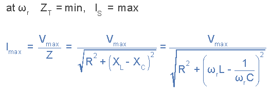 如果串聯(lián)RLC電路由恒定電壓下的可變頻率驅動(dòng),則的大小I與阻抗Z成正比,因此在諧振時(shí),電路吸收的功率必須為最大值,因為P=I2。