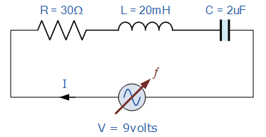 注意:電源電壓可能僅為9伏,但在諧振時(shí),電容器V C和電感V L兩端的無(wú)功電壓峰值為30伏!