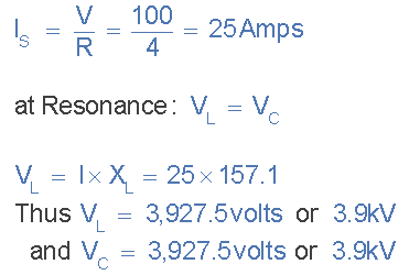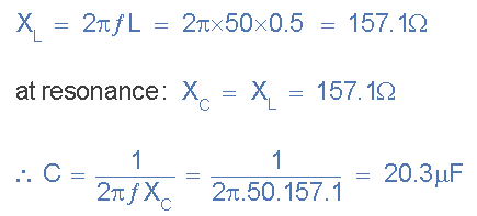 串聯(lián)電路由一個(gè)4Ω的電阻,一個(gè)500mH的電感和一個(gè)跨接100V,50Hz電源的可變電容組成。計算產(chǎn)生串聯(lián)諧振條件所需的電容,以及在諧振點(diǎn)兩端電感器和電容器兩端產(chǎn)生的電壓。
