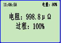 選擇好時(shí)長(cháng)后,按測試/停止開(kāi)始測試,當過(guò)程顯示100%后,說(shuō)明測試完成,所顯示的電阻值即為被測試品的電阻值。