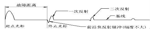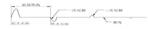 推動(dòng)波形為正的單一脈沖波形,反射面波形為正的單一脈沖波形,但單一脈沖的前端開(kāi)發(fā)了向下的負反沖,負反沖的大小因常見(jiàn)故障而有很大不同。 起點(diǎn)固定在發(fā)送脈沖和基線(xiàn)的結合部,終點(diǎn)固定在負的反射脈沖和基線(xiàn)的結合部。 測試時(shí),如果反射脈沖沒(méi)有前方負齒隙,則通過(guò)反射脈沖的上升沿和基線(xiàn)的連接來(lái)校正終端光。