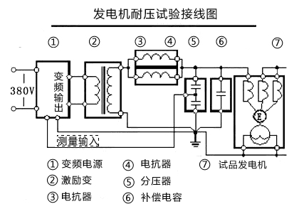 (3)選擇設備:16kW變頻控制源; 40kV/2A電抗器二臺并聯(lián); 16kVA(4kV/4A)勵磁變; 50kV分壓器。