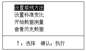 此時(shí),按“↑” 鍵選擇接法。按“確認” 鍵保存接法,返回主菜單: