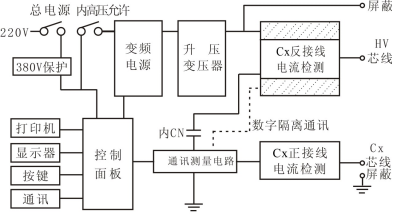 升壓變壓器:將變頻電源輸出升壓到測量電壓,最大無(wú)功輸出2KVA/1分鐘。