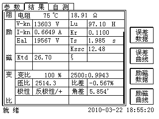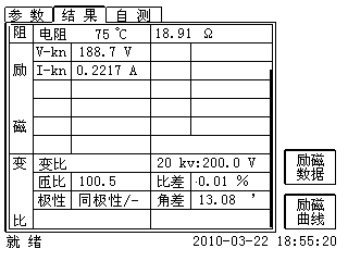 匝數比 | 被測試的二次繞組與一次繞組的實(shí)際匝比 | √ | √ | √ | √ | √ | √ | √ | √ |